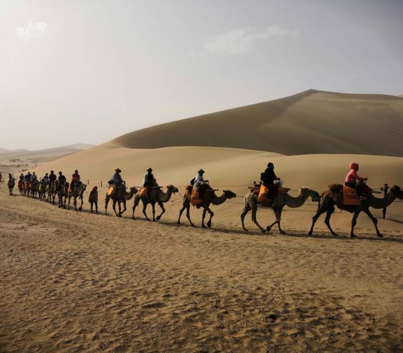而敦煌的自然风光,同样令人心驰神往。鸣沙山的巍峨壮丽,月牙泉的静谧灵动,构成了一幅幅动人的画卷。当您骑上骆驼,缓缓行走在鸣沙山的脊背上,那随风起舞的黄沙,仿佛是大自然最动人的乐章。而当夜幕降临,月牙泉在月光的照耀下,更显得神秘莫测,仿佛一颗镶嵌在沙漠中的明珠,闪烁着迷人的光芒。
